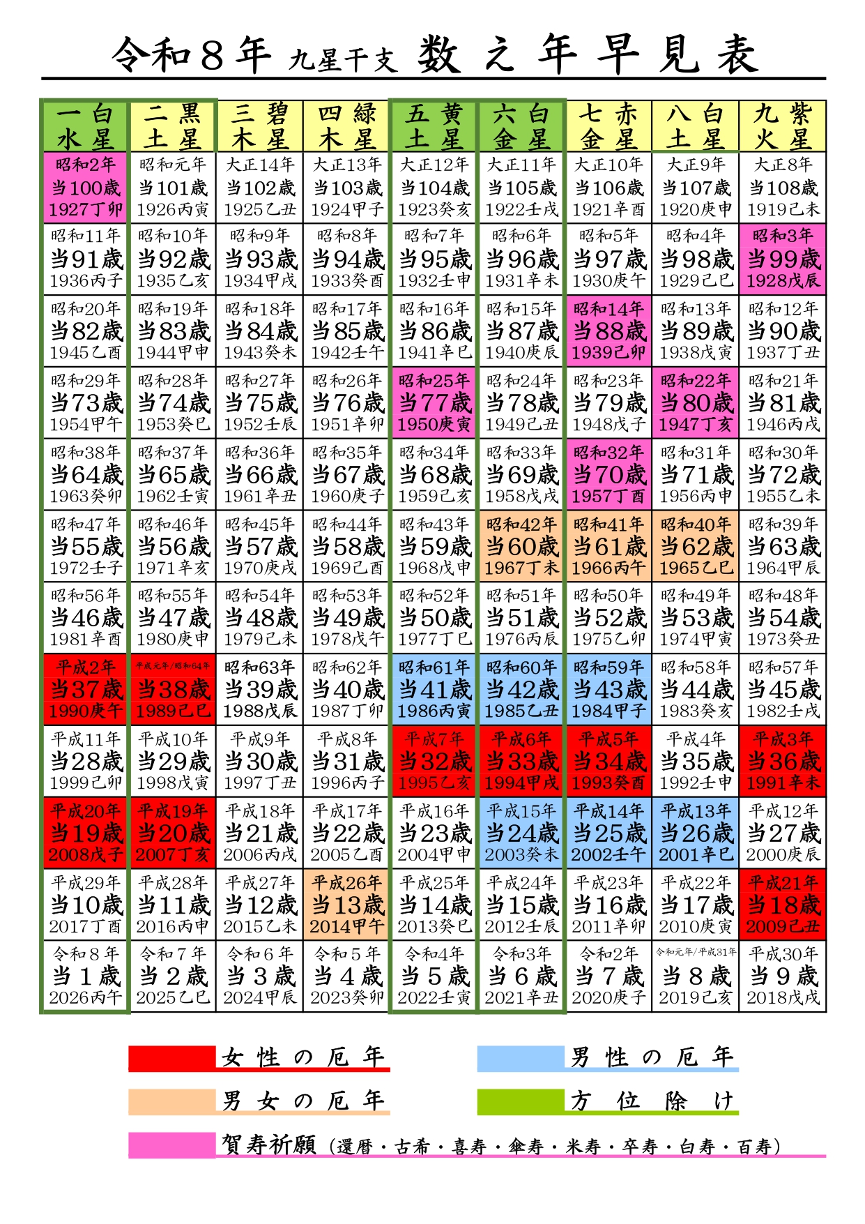 厄年一覧